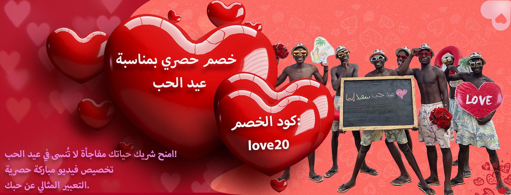 تتضمن باقة الفيديو العادية موسيقى من اختيارنا (الموسيقى المخصصة متاحة بتكلفة إضافية)، ورسالتك المخصصة التي تُقال بصوت عالٍ، ورقصًا. بالإضافة إلى ذلك، ستحصل على رابط سحابي سيخزن الفيديو لمدة شهر واحد.